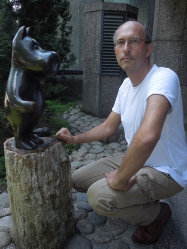 Er ist aus Bronze. Tampere, Finnland, im Sommer 2014