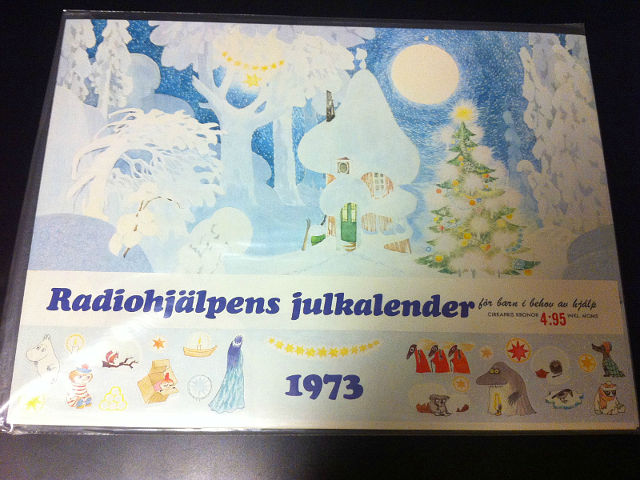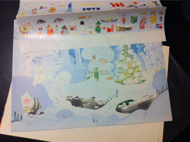 Neben dem vorweihnachtlichen 13-teiligen Fernsehspiel von 1973 erschien im selben Jahr ein weiteres Mumin-Nebenwerk, das die Bezeichnung »Adventskalender« trug. Die beiden Produkte gehören ursächlich zusammen, da in jedem Jahr zur vorweihnachtlichen Fernsehserie auch ein käuflicher Kalender herausgebracht wurde.