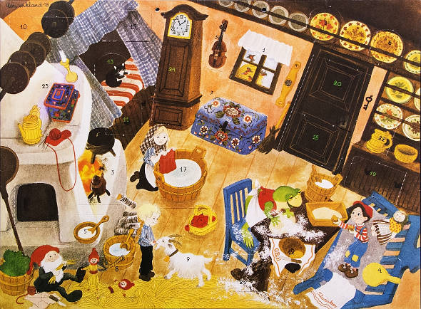 *) Wohl aus diesem Grunde lag auch noch ein »echter« Adventskalender mit Türchen bei, allerdings mit einem Bild von Ilon Wikland, die vor allem durch Illustrationen von Büchern Astrid Lindgrens berühmt wurde: