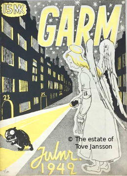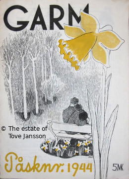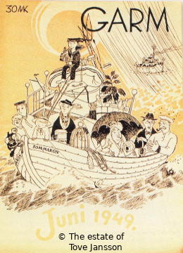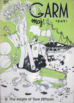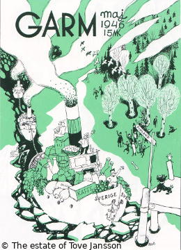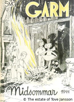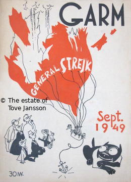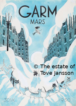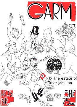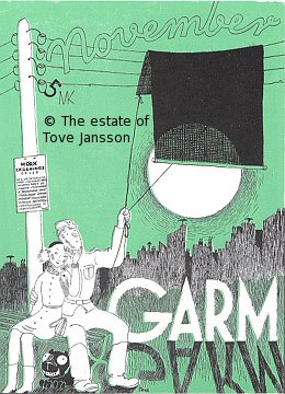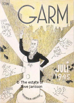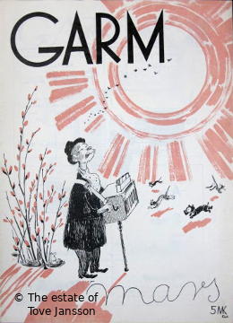 Tove Jansson bekam von ihrer Mutter Ham erstmals 1929 einen Illustrationsauftrag für die schwedischsprachige Satirezeitschrift »Garm« zugeschanzt. Hieraus ergab sich eine langjährige intensive Mitarbeit.