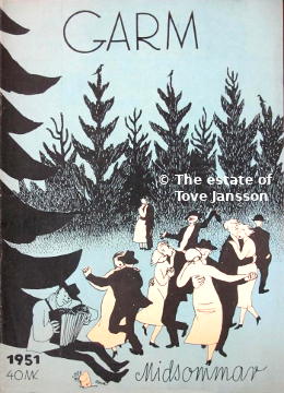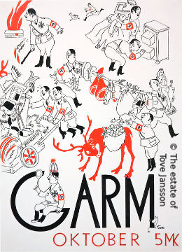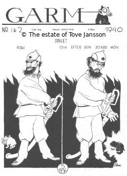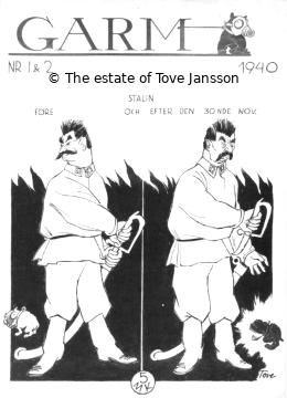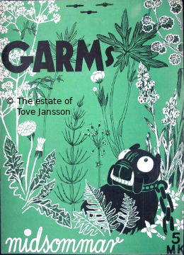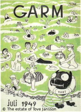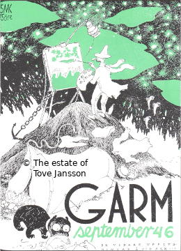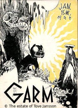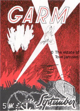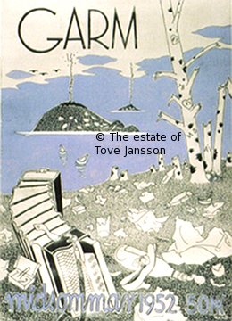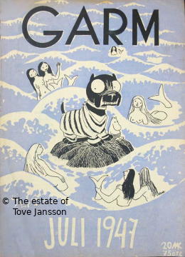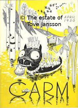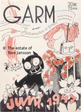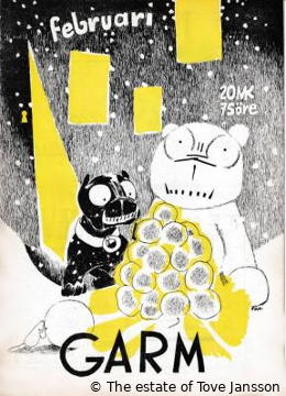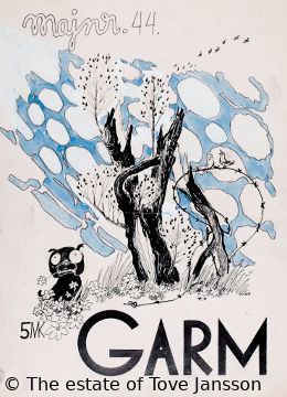 Insgesamt trug Tove, die »Garm« bis zur letzten Ausgabe treu blieb, hunderte von Zeichnungen zwischen harmlosem Bildwitz und stechender politischer Karikatur sowie etwa 100 Titelblätter bei. Dabei entwickelte sich nach und nach eine kleine Trollfigur, die als Markenzeichen der Zeichnerin das Bildgeschehen kommentierte: der Mumintroll war geboren – und etliche Erlebnisse aus Weltpolitik und Kultur, denen er in »Garm« begegnet war, nahm er anschließend in seine eigene Welt als Erzählungsmotive mit.