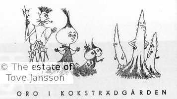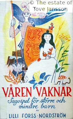 1951 erschien bei Lindström in Stockholm die Theaterstück-Sammlung »Våren vaknar – Sagospel för större och mindre barn« (»Der Frühling erwacht – Märchenstücke für größere und kleinere Kinder«) der Pädagogin Lilli Forss-Nordström (1893-1968), von Tove Jansson mit Buchumschlag und Kapitelvignetten versehen. Wie in vielen Illustrationsprojekten der späten 1940er- und frühen 1950er-Jahre sind auch hier fast überall kleine Mumintrolle versteckt.