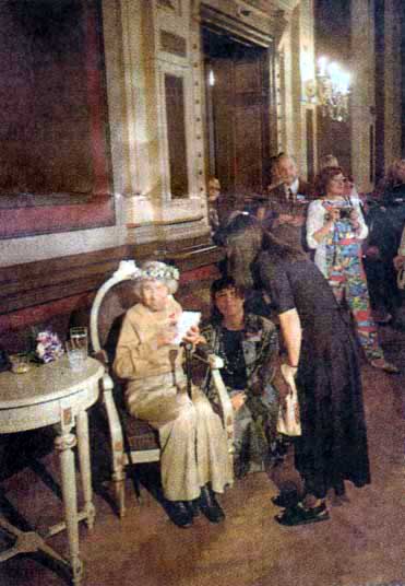 Tove Jansson wurde im August 1914 geboren. Am 9., um genau zu sein, wir sind also schon etwas spät dran. Aber wie man so hört, war sie eigentlich nie, und besonders nicht in ihren späteren Jahren, so erpicht drauf, in einer solchen Weise im Mittelpunkt des öffentlichen Lebens zu stehen. Des öfteren verarbeitete sie die vielen Menschen, die ungefragt auf ihrer Insel auftauchten, um sie anzustaunen, in ihren Schriften... Ein Bild vom Mumin-Kongress, der aus Anlass des 80. Geburtstages stattfand, lege ich bei – die Bildqualität ging leider nicht besser. Tove Jansson sitzt tapfer auf ihrem Sessel und erträgt den Rummel. Nun, 10 Jahre später, üben wir uns also in stillem Gedenken... In Finnland ist sicherlich etwas mehr los. Über Japan kann ich nur spekulieren.
