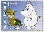 Des 90. Geburtstags gedenkt auch die neue Mumin-Briefmarke der finnischen Post. Sie ist sowohl mit einer flaumigen Schicht überzogen als auch im Prägedruck hergestellt, beides ziemliche Novitäten für Finnland. Graphisch ist die Marke (wie zuletzt üblich, muss man leider sagen) etwas roh geraten. Ich hoffe, dass künftige Mumin-Briefmarken von diesen albernen, sterilen Farbverläufen als Hintergrund wieder abrücken. Ein einfaches weiß-Lassen kann bei kompetenter Einteilung des Blattes so viel lebendiger sein, wie TJs meisterhafte Zeichnungen tausendfach beweisen. Ein Bild der Marke liegt ebenfalls bei.
